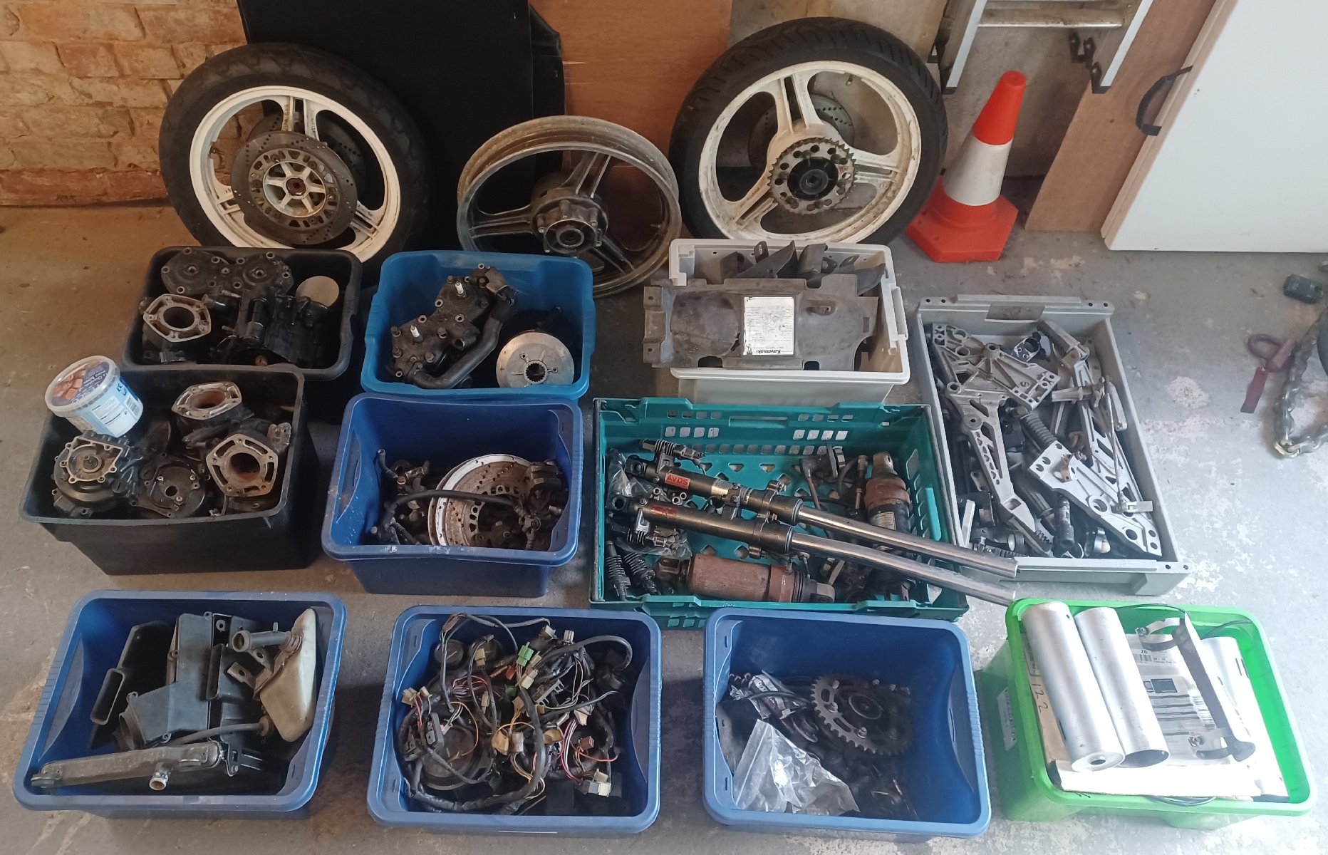 the dented KR250S one I had spare. He also fettled the brakes and managed to improve the sealing on the front exhaust. I taxed it immediately, I'm looking