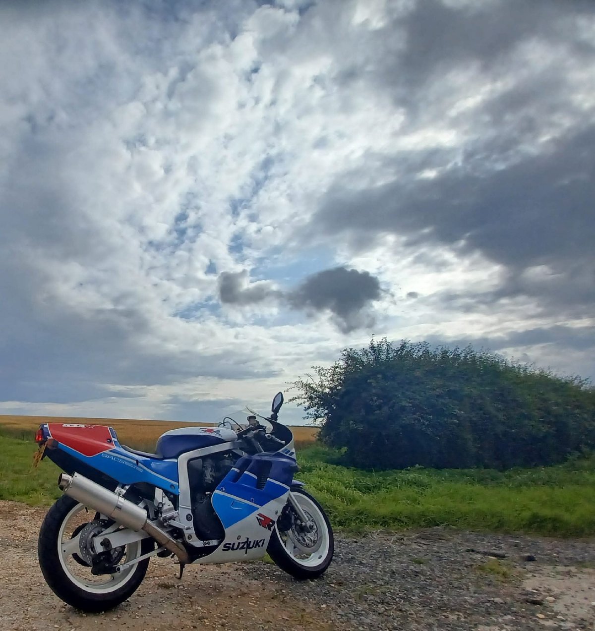 My first brand-new bike was a Suzuki GSX-R750G in October 1986. I'd gone into the shop to buy a GSX-R400 which had been specially imported in very limited quantities that summer to allow them to be raced in the Production TT. I'd