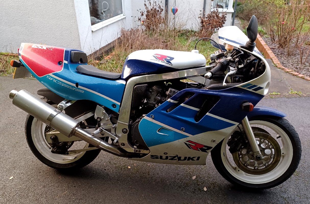 A what ? Well, it's the "Double R" Sports Production model that was released in 1989 to homologate engine and chassis changes for World Superbike racing. The Suzuki equivalent of the RC30, OW01 and ZXR750R. Only 500 built, with