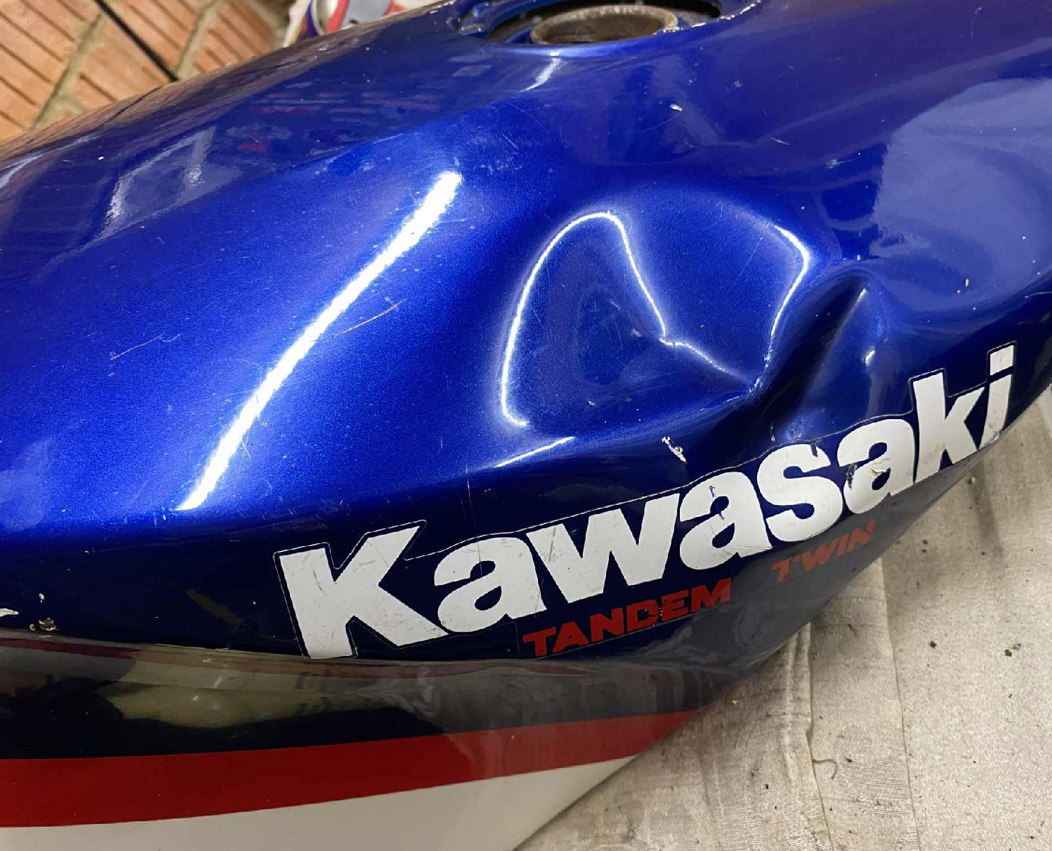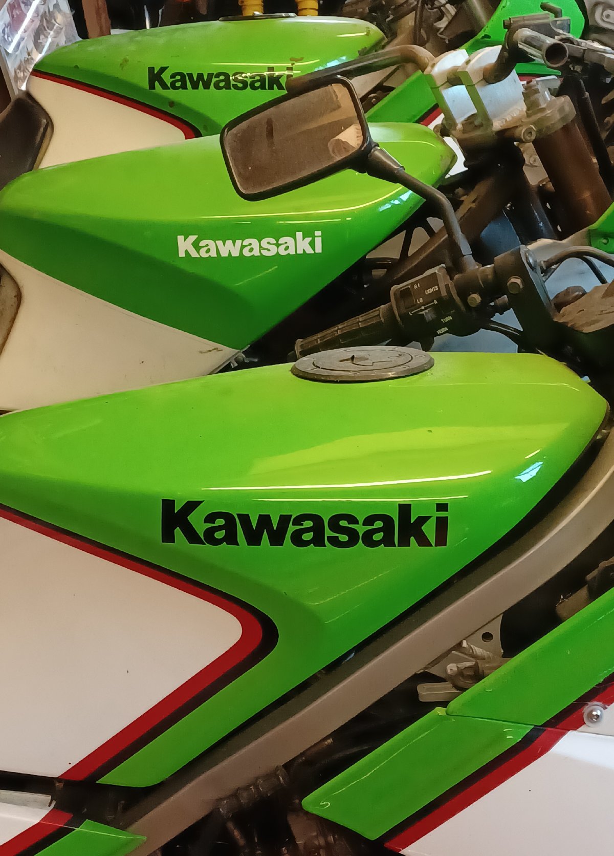 fears for him. I gave him a spare waterpump stub-housing and gasket, a copy of the workshop manual, and the bike still had the battered KR250S tank