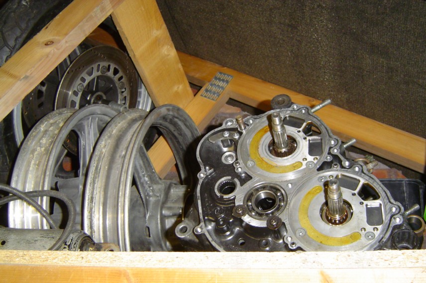 ...starting with the puddle of fuel that appeared underneath the bike yesterday. Or is it oil ? 2T or gearbox